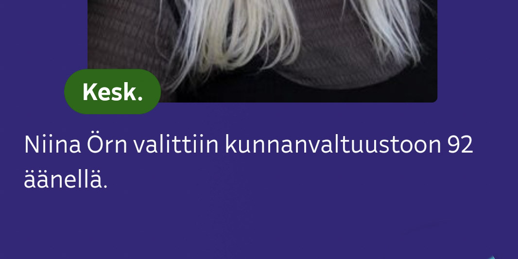 Keskusta 13.4.2025 pidetyissä kuntavaaleissa Aurassa loistavan vaalituloksen puolueena, ja sain Keskustan riveistä eniten henkilökohtaisia ääniä. Näin ollen sain Auran kuntavaaleissa korkeimman vertausluvun – vaalien lopputulos oli siis osaltani paras mahdollinen.